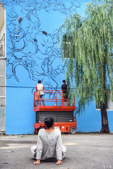 第一次看到用戶在自己家生產(chǎn)的全自行液壓升降機(jī)上畫壁畫有點(diǎn)小激動(dòng),全電瓶行走和升降,沒有支腿,能更好的貼服墻面,給藝術(shù)類學(xué)生提供了很大的方便。