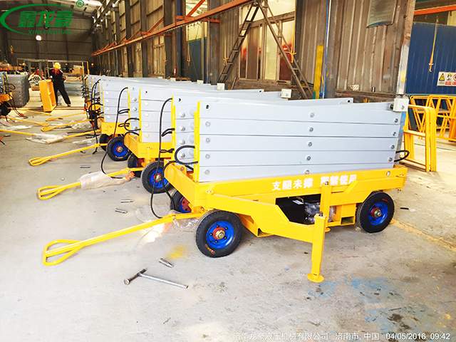 移動(dòng)剪叉式升降平臺(tái)主要技術(shù)特點(diǎn):臺(tái)面鋼板折彎、底架及剪叉結(jié)構(gòu)山鋼定做高強(qiáng)度矩形管材; 標(biāo)準(zhǔn)冷彎槽做道軌,使用尼龍滑塊做導(dǎo)軌輪,接觸面大,升降平穩(wěn),晃動(dòng)?。灰簤河透?nbsp; 內(nèi)置防爆閥(防止油管斷裂,平臺(tái)失速下降),采用進(jìn)口密封圈,經(jīng)久耐用,不泄露;雙層鋼網(wǎng)高壓油管;升降機(jī)專用液壓泵站,加裝應(yīng)急下降閥,平臺(tái)斷電可手動(dòng)控制 下降,內(nèi)置溢流閥,可防止上行運(yùn)動(dòng)時(shí)系統(tǒng)壓力過(guò)高,起到超載保護(hù)功能;充氣橡膠輪胎; 電路電器、接觸器羅列連接,加裝熱過(guò)載保護(hù),缺相保護(hù)等安全保護(hù)功能;電動(dòng)上、下電動(dòng)控制,控制按鈕盒加裝急停按鈕,以保障財(cái)產(chǎn)及人身安全,各操作部分使用24V安全控制電壓;軸銷圓鋼配做,調(diào)質(zhì)處理;拋丸、噴砂 除銹處理,除去鋼結(jié)構(gòu)構(gòu)件表面的銹蝕及焊接飛濺,能使鋼構(gòu)件表面產(chǎn)生一定程度的凹凸不平的效果,增大粉末的附著力;使用靜電粉末噴涂;涂層外觀質(zhì)量?jī)?yōu)異,附著力及機(jī)械強(qiáng)度強(qiáng),色澤亮度高,經(jīng)久不褪色。
