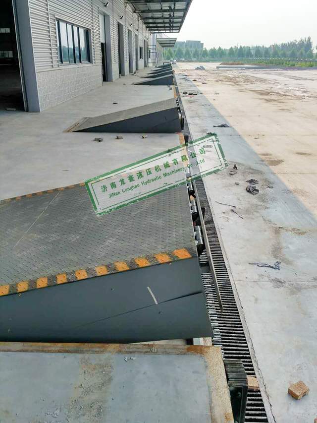 淄博某食品加工企業(yè)倉庫多臺固定登車橋安裝完畢現(xiàn)場照片